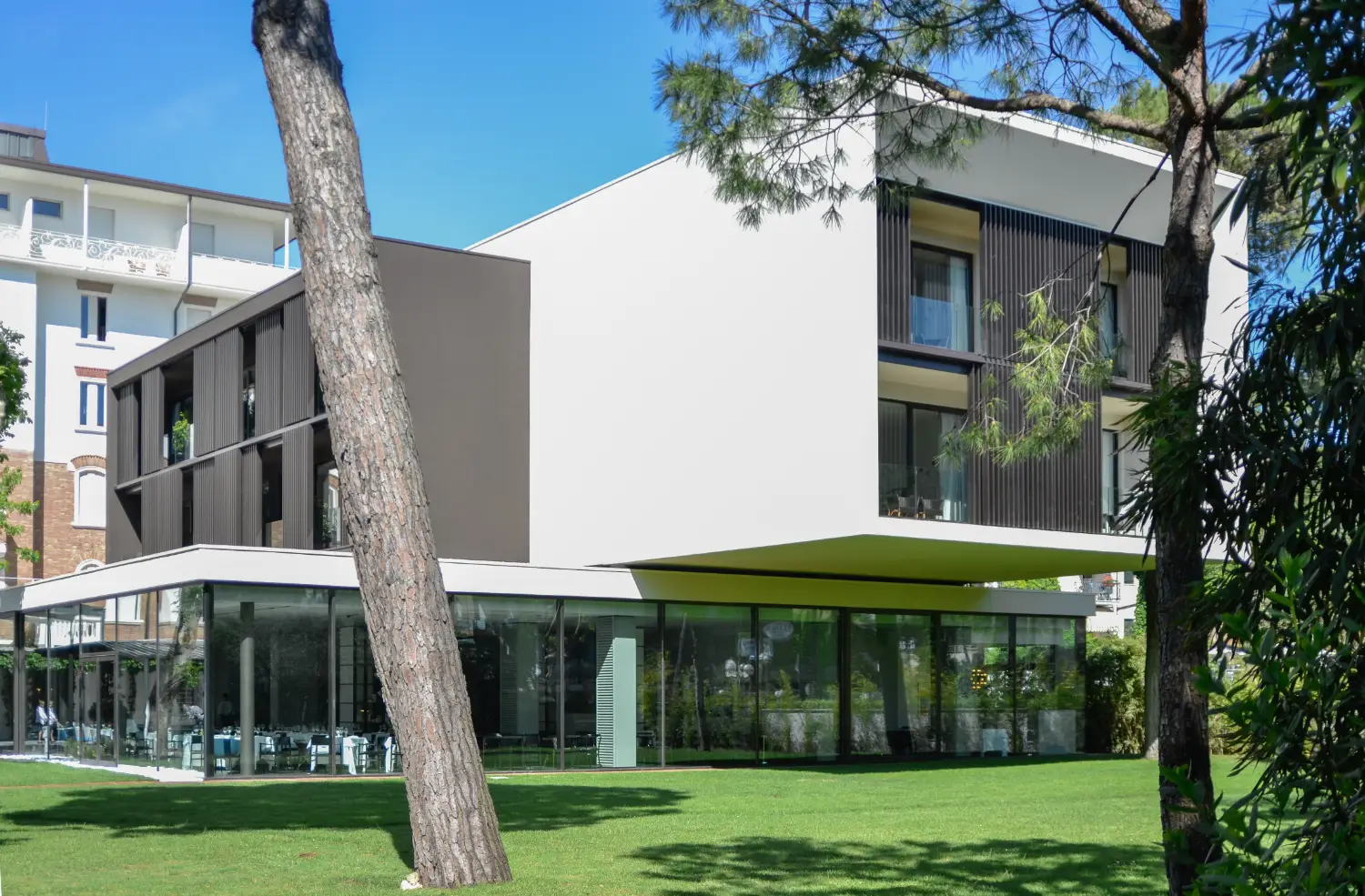 Renovation of the historical building adding a new reception pavilion and redesigning lobby, bars, reading room, kids room, back office and the private beach with 440seats. Realization of a new contemporary wing including a 460-seats restaurant, 16 guest rooms and multilevel gardens.